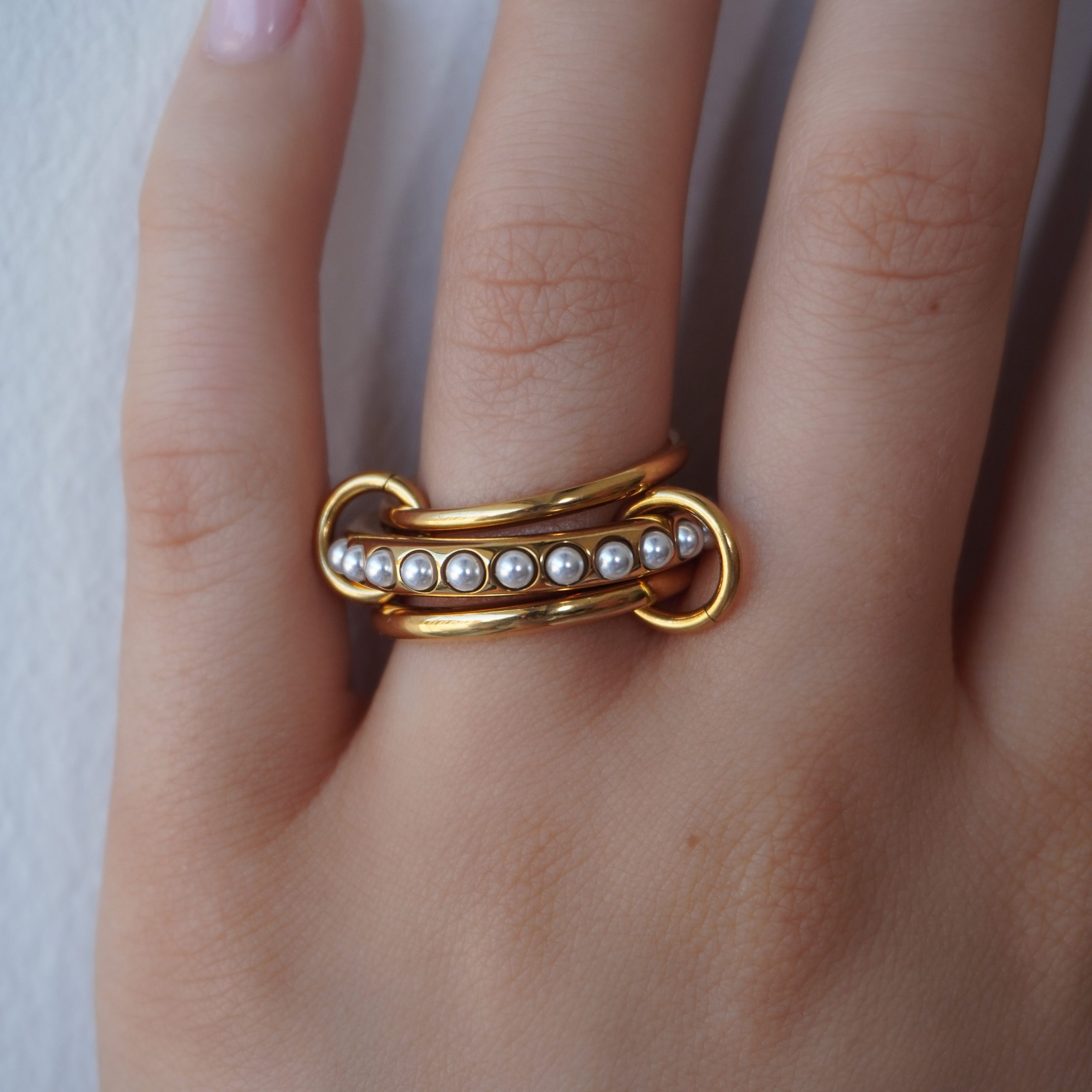 Three’s never a crowd with the Trio Amour Ring. Designed with three intertwined bands and a touch of cutesy pearls. she’s classy and always the life of the party.